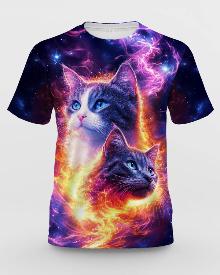 Cat Print Short Sleeve T-shirt Adult & Youth