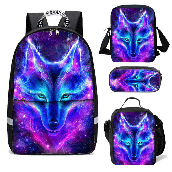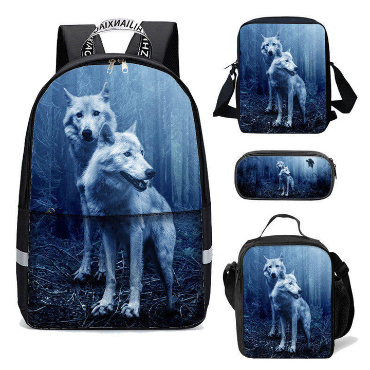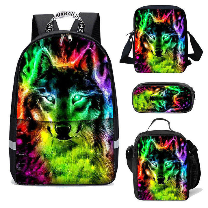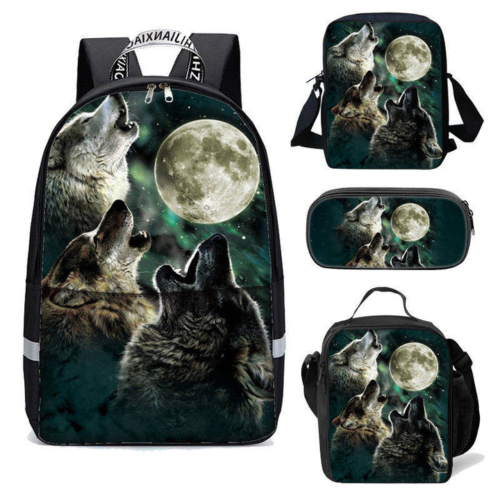 Cool Wolf 3d Backpack Shoulder Bag Pencil Bag Lunch bag for School