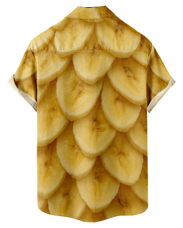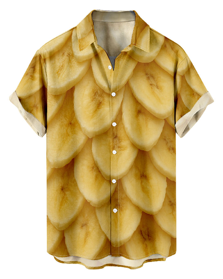 Men's Banana Print Hawaiian Shirt Summer Beach Button Up