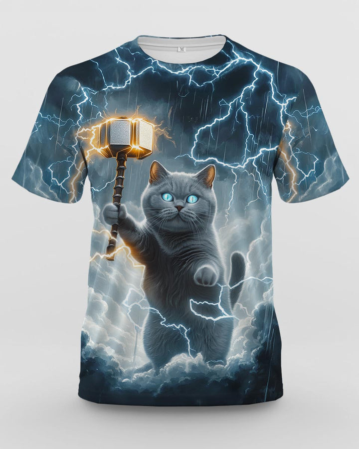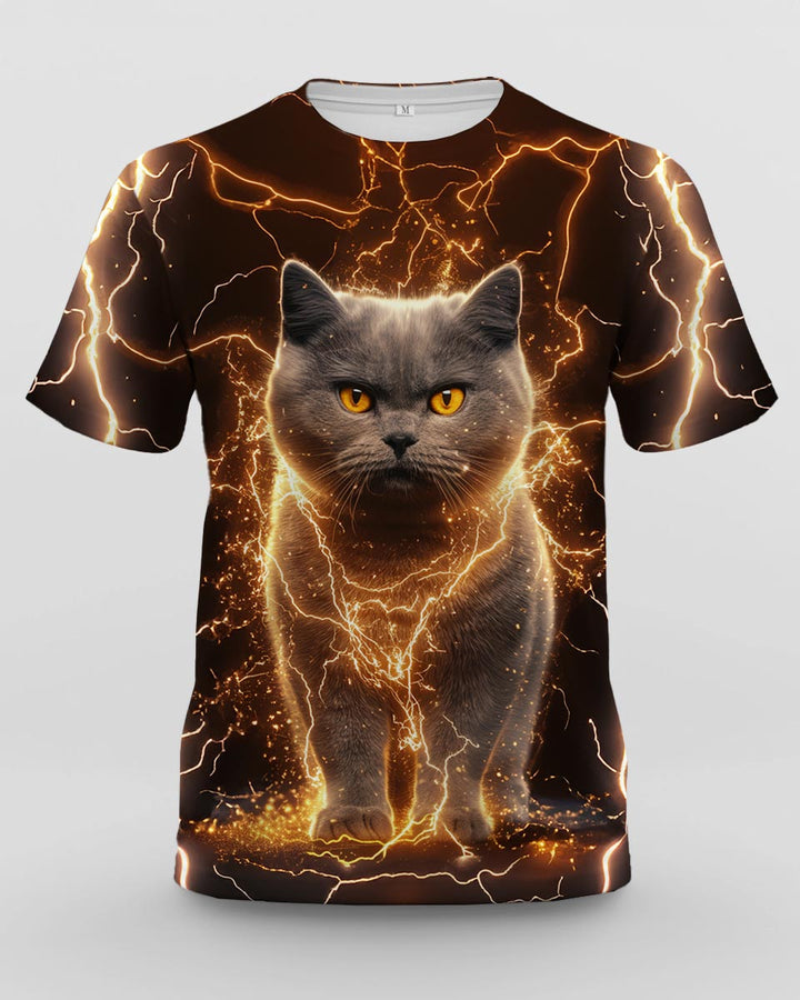 Men's Lightning Cat Print Short Sleeve T-shirt