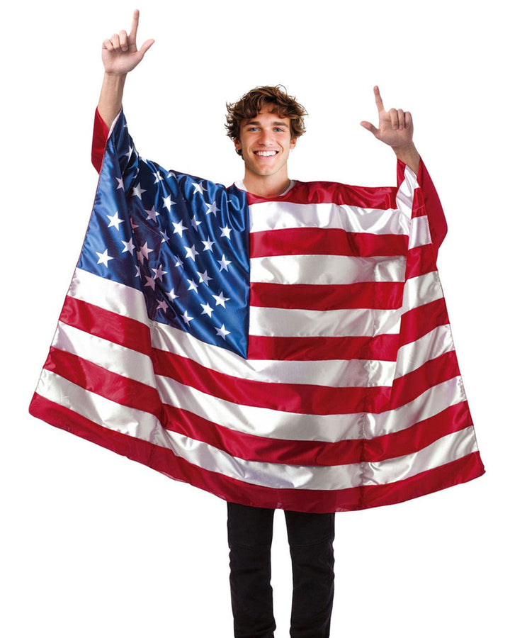 USA American Flag Cape Cloak Costume Wearable Flag with Sleeves Classic Flag