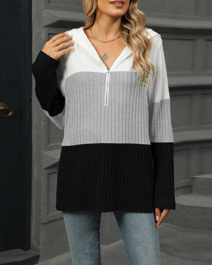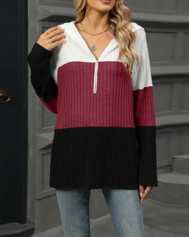 Women’s Half-Zip Color Block Hoodie Casual Pullover Sweatshirt