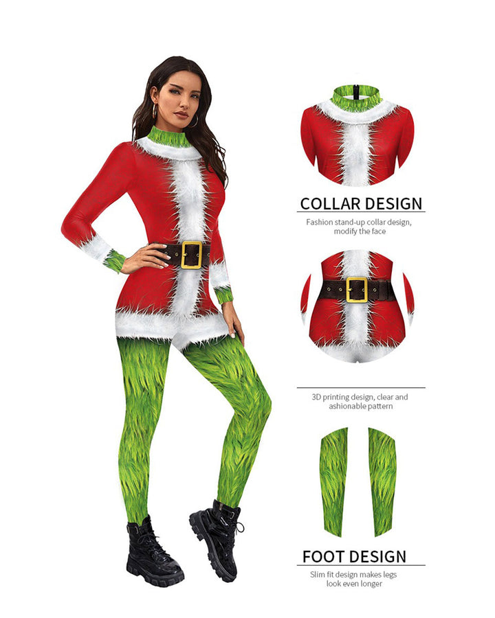 Women's Christmas Santa Halloween Costume Bodysuit Jumpsuit