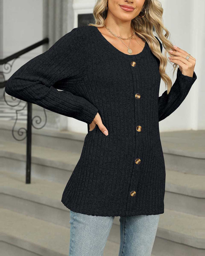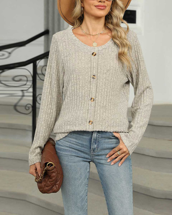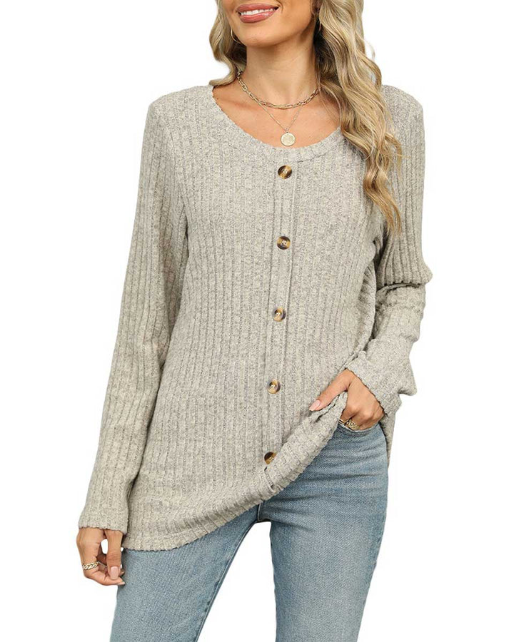 Women's Button Down Knit Cardigan Long Sleeve Casual Blouse